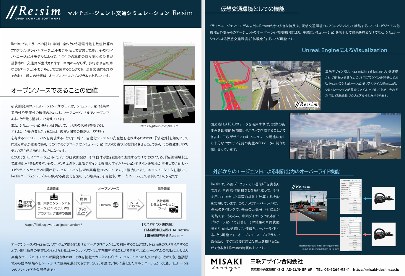 研究開発用ドライビングシミュレータの開発・サポート・レンタル事業と予防安全・自動運転システム効果評価のためのシミュレーション・プログラム開発・サポートを行っております。